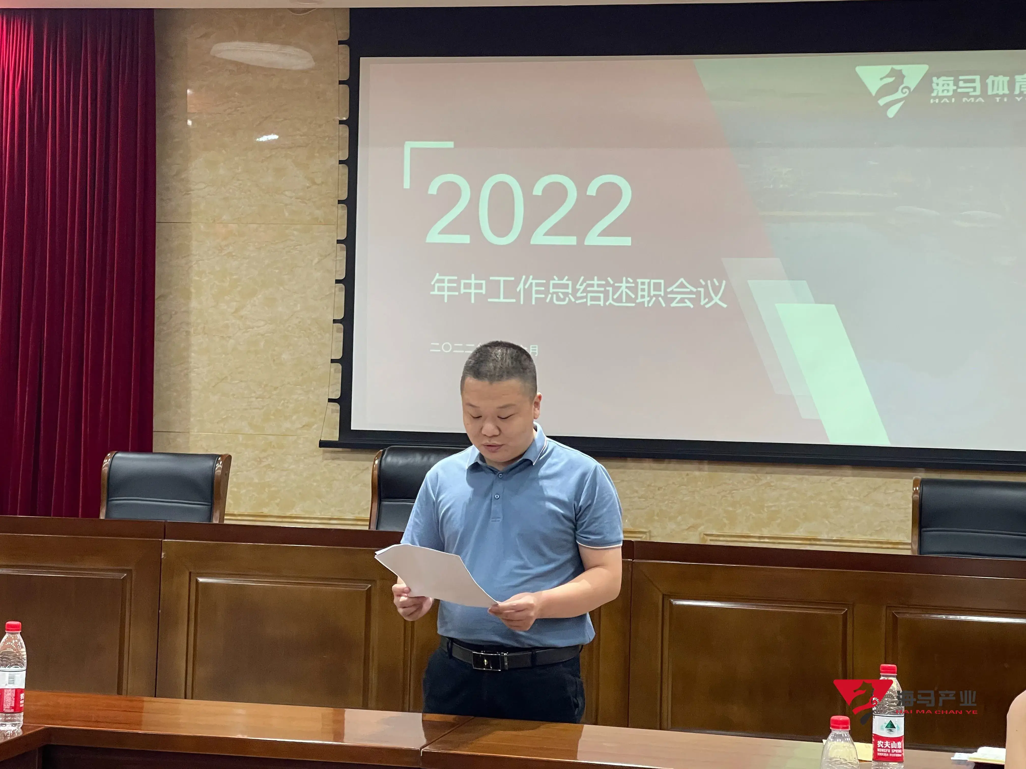 2022年6月29日下午,杏耀文化产业集团在山东省体育中心二楼会议室召开年中工作总结述职会议,会议对上半年工作成果进行了总结汇报,并就下半年重点工作进行部署。总经理王海民出席了本次会议。会议由综合管理部负责人王永健主持。